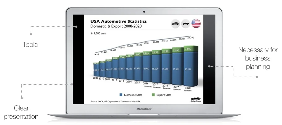 AutoBook provides general market statistics for each country and sales performance by brand and model.